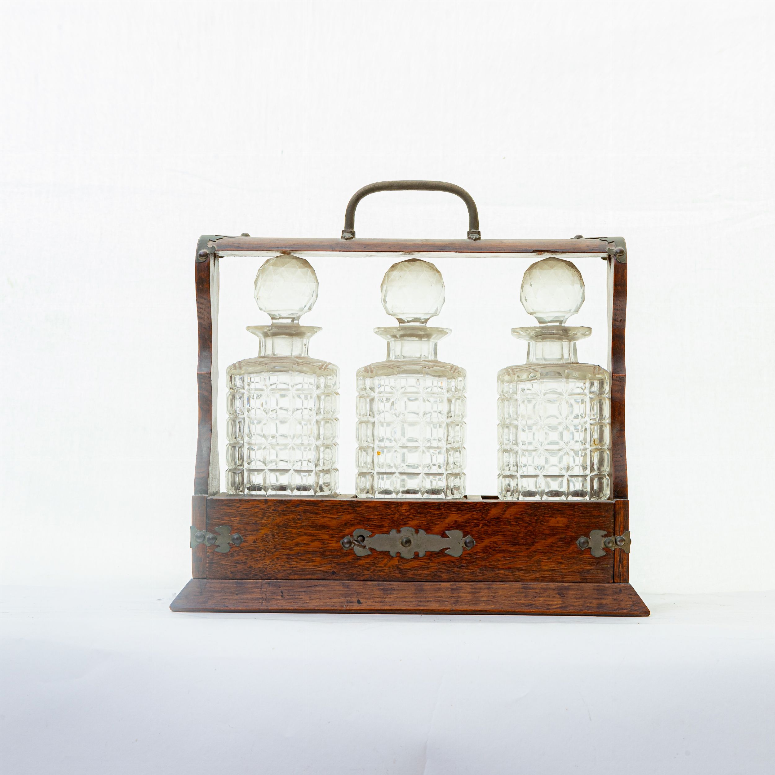 Londra, fine XIX inizi XX secolo i con cassa in legno di rovere con tre flaconi in cristallo controtagliato.