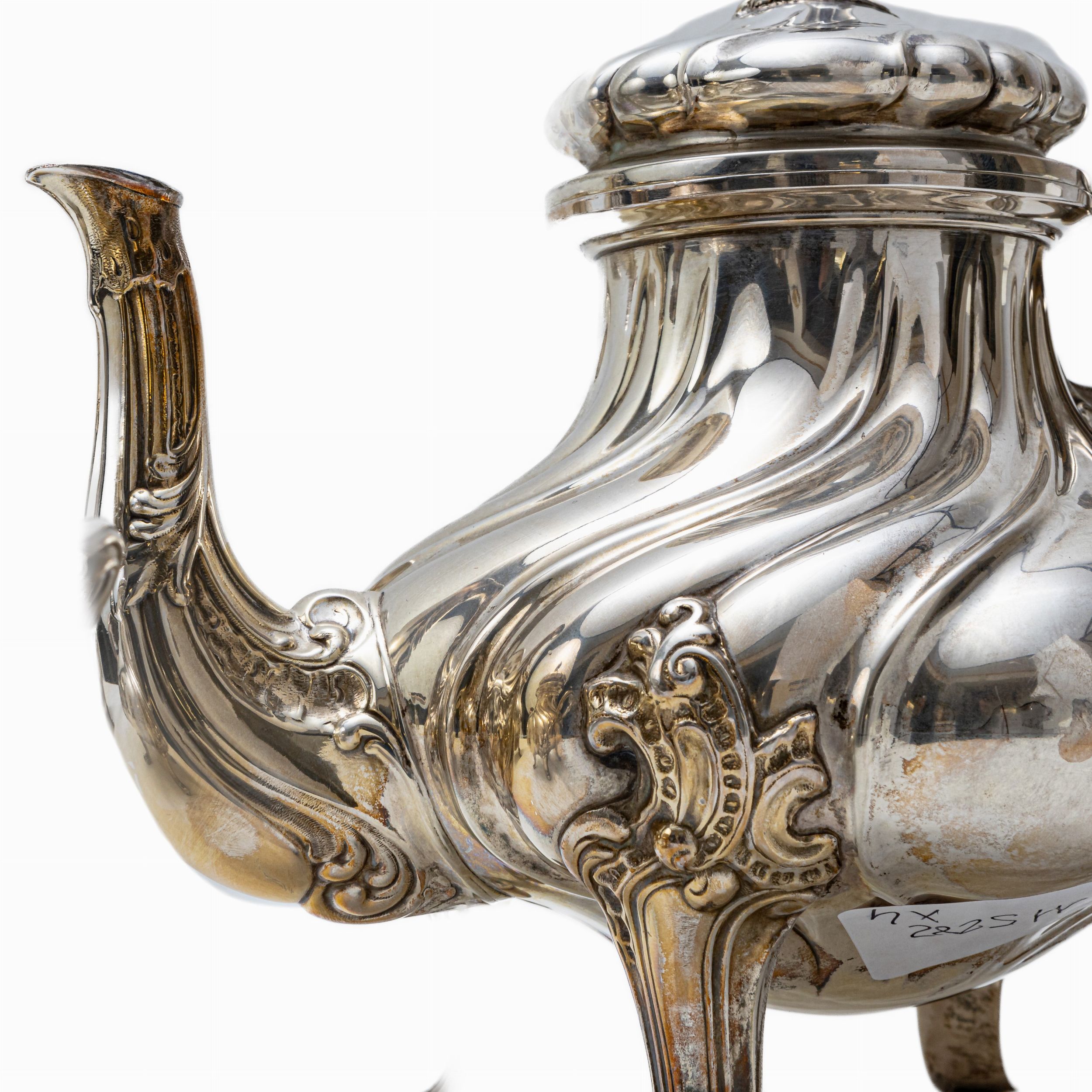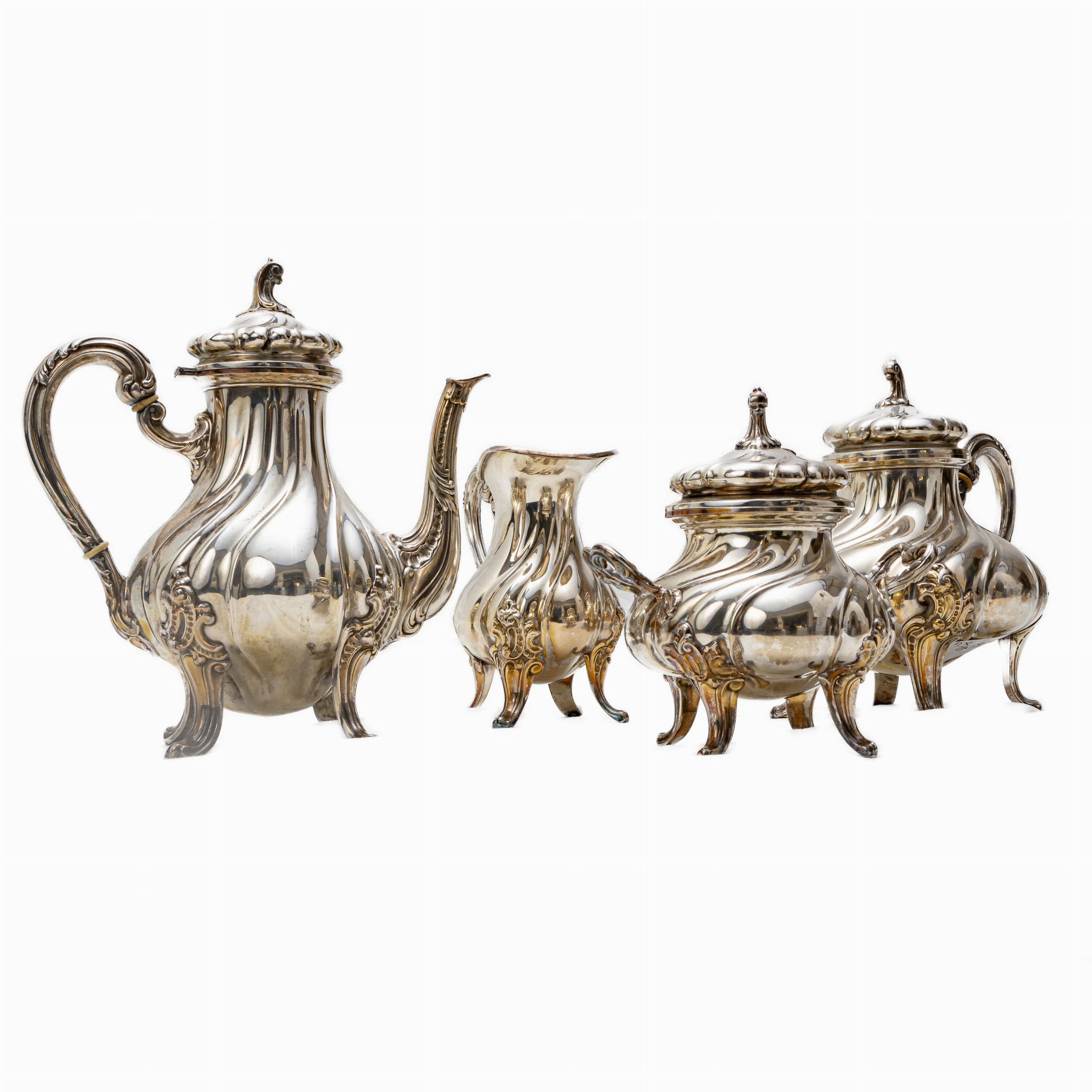 composta da: caffettiera, lattiera, teiera e zuccheriera di forme barocche. Manifattura Fornari Roma, ,metà XX secolo gr.2079