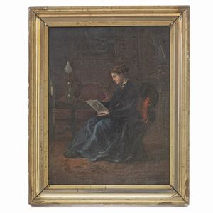dipinto ad olio su tela, 26,5 x 21 cm prima metà XX secolo entro cornice.