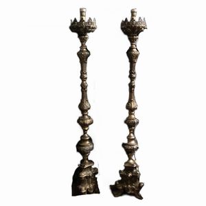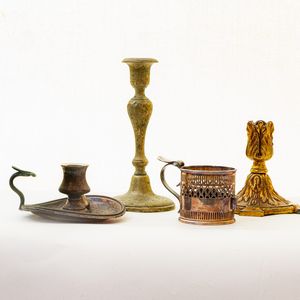 Lotto di quattro candelieri in metallo parte argentato a forme e dimensioni diff [..]