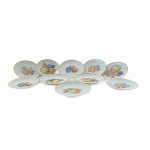 diametro 18,5 a 20,5 cm in porcellana in tre diverse misure con decoro a frutta su fondo bianco ed orlo rifinito [..]