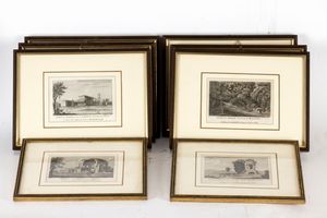 acquaforte, 17 x 14 cm ca. cadauna con cornice, vetro e passe-partout (30 x 28 x 2 cm). Buone condizioni [..]