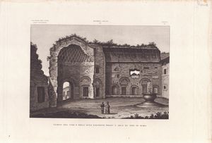acquaforte, 151 x 282 mm, copia in controparte dell'acquaforte di Piranesi della serie 'AntichitĂ Romane', una [..]