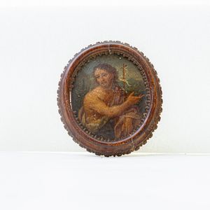 dipinto ad olio su rame, 8 X 7 cm XVIII secolo entro cornice. Condizioni: piccole cadute di colore