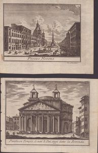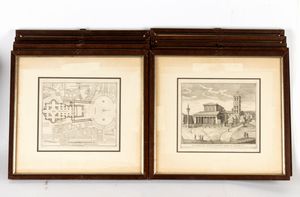 Lotto di 10 incisioni raffiguranti chiese e basiliche di Roma