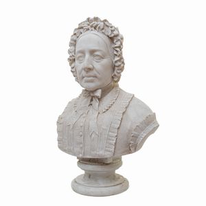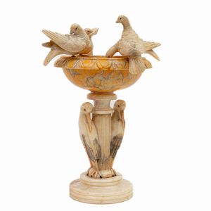 30 x 30 x 14 cm con base in marmo bianco, dal corpo cilindrico con accostata la musa Calliope in bronzo dorato. [..]