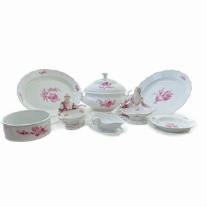 seconda metĂ XX secolo con decoro floreale in porpora di Cassio composto da: 4 vassoi ovali dal bordo mistilineo [..]