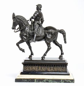 Bronzo patinato nero, scultura: 43 x 31 x 16 cm XIX secolo Questo monumento equestre riproduce la notissima scultura [..]