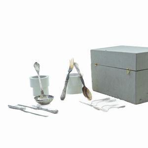seconda metĂ XX secolo composto da: 48 forchette a due misure, 12 cucchiaini, tre posate da servizio , 24 coltelli [..]