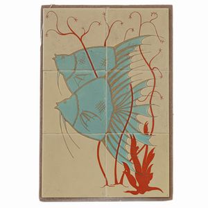 45,5 x 30 cm anni '20/'30 con pesci dipinti sotto smalto.