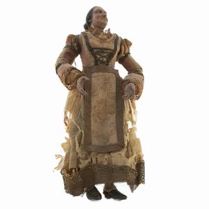 Popolana figura del presepe napoletano in ceramica e paglia