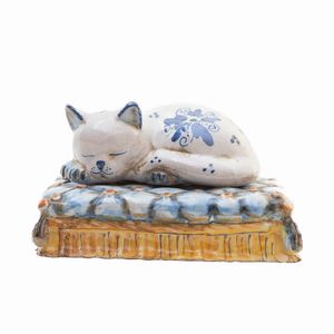Scultura in ceramica a forma di gatto