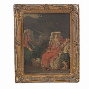 dipinto ad olio su tela, 30 x 22 cm inizi XIX secolo entro cornice coeva dorata,