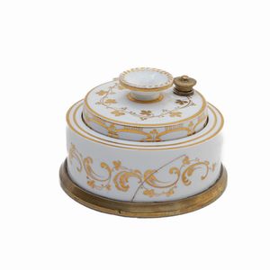 Porta inchiostro in porcellana bianca,