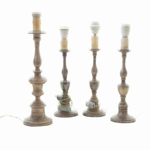 Quattro lampade da appoggio corpo a rocchetto in lamina d'argento 800/1000