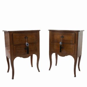 Coppia comodini a due cassetti in noce e radica di noce