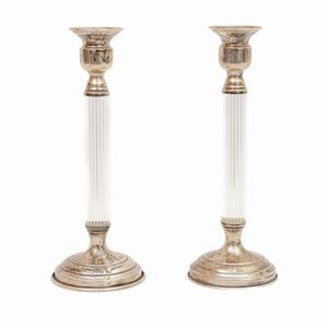 Coppia candelieri in argento 925 e vetro