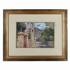 acquarello su carta applicato su tela, 40 x 50 cm in cornice, firmato
