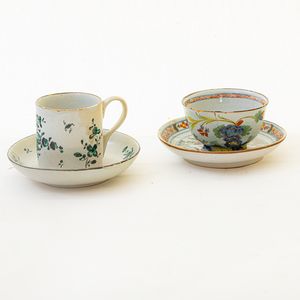 Lotto di due tazze da caffè con piatto in ceramica policroma :
