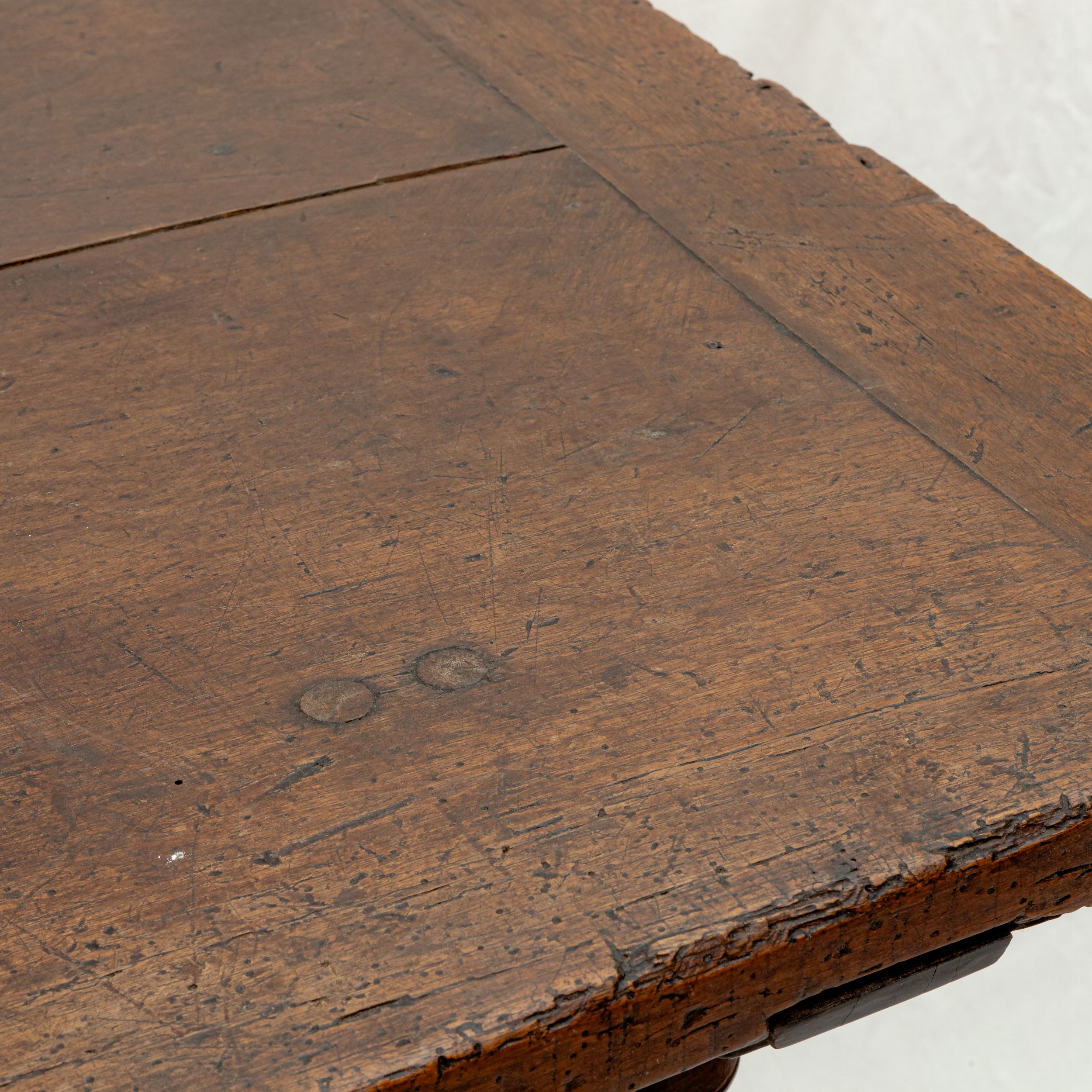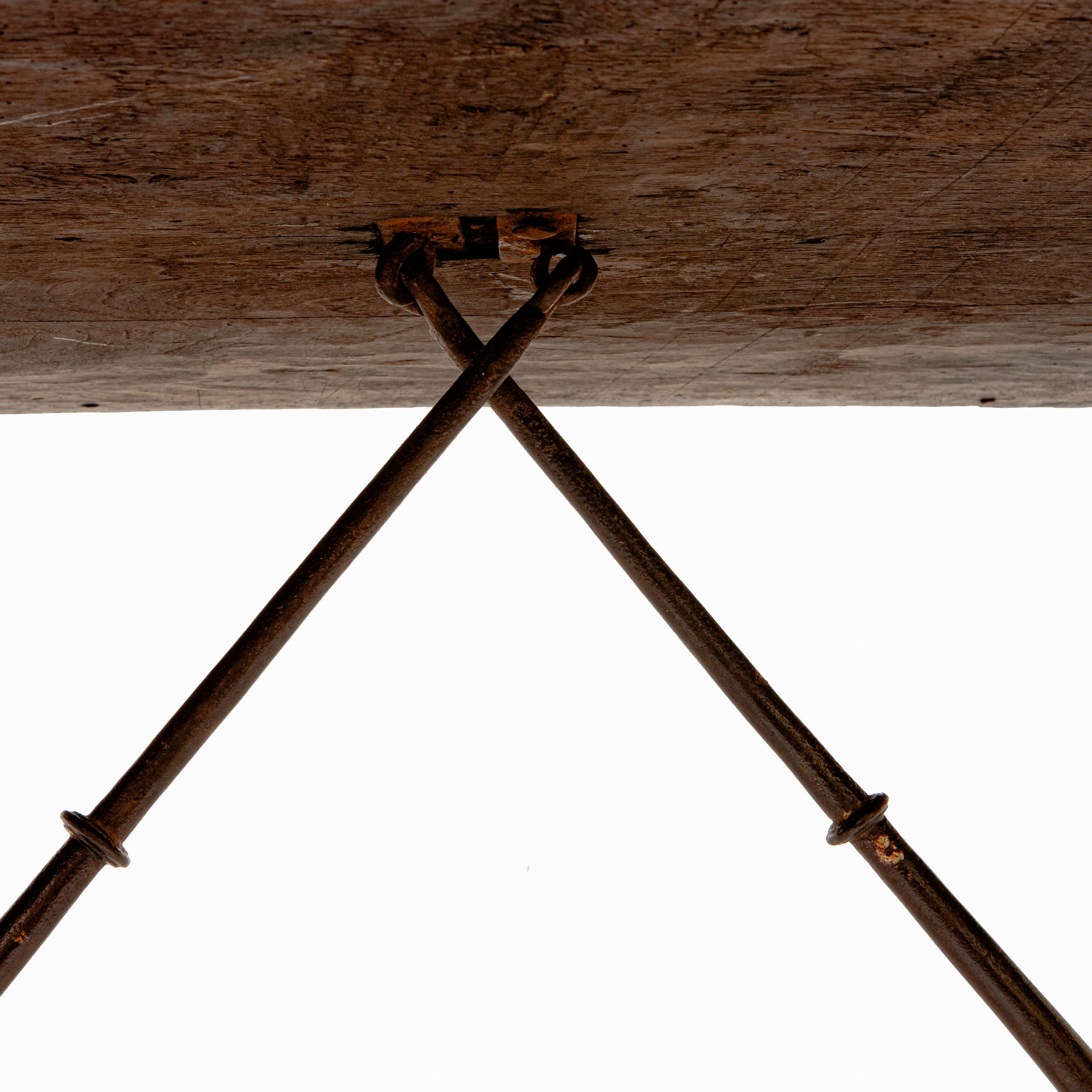 con quattro gambe a tortiglione, raccordate alla base da due lance in ferro battuto. Tavolo con elementi antichi riassemblati.