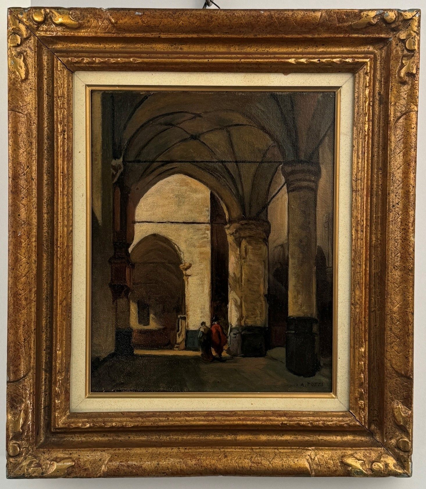 A. Pozzi Interno di chiesa con figure