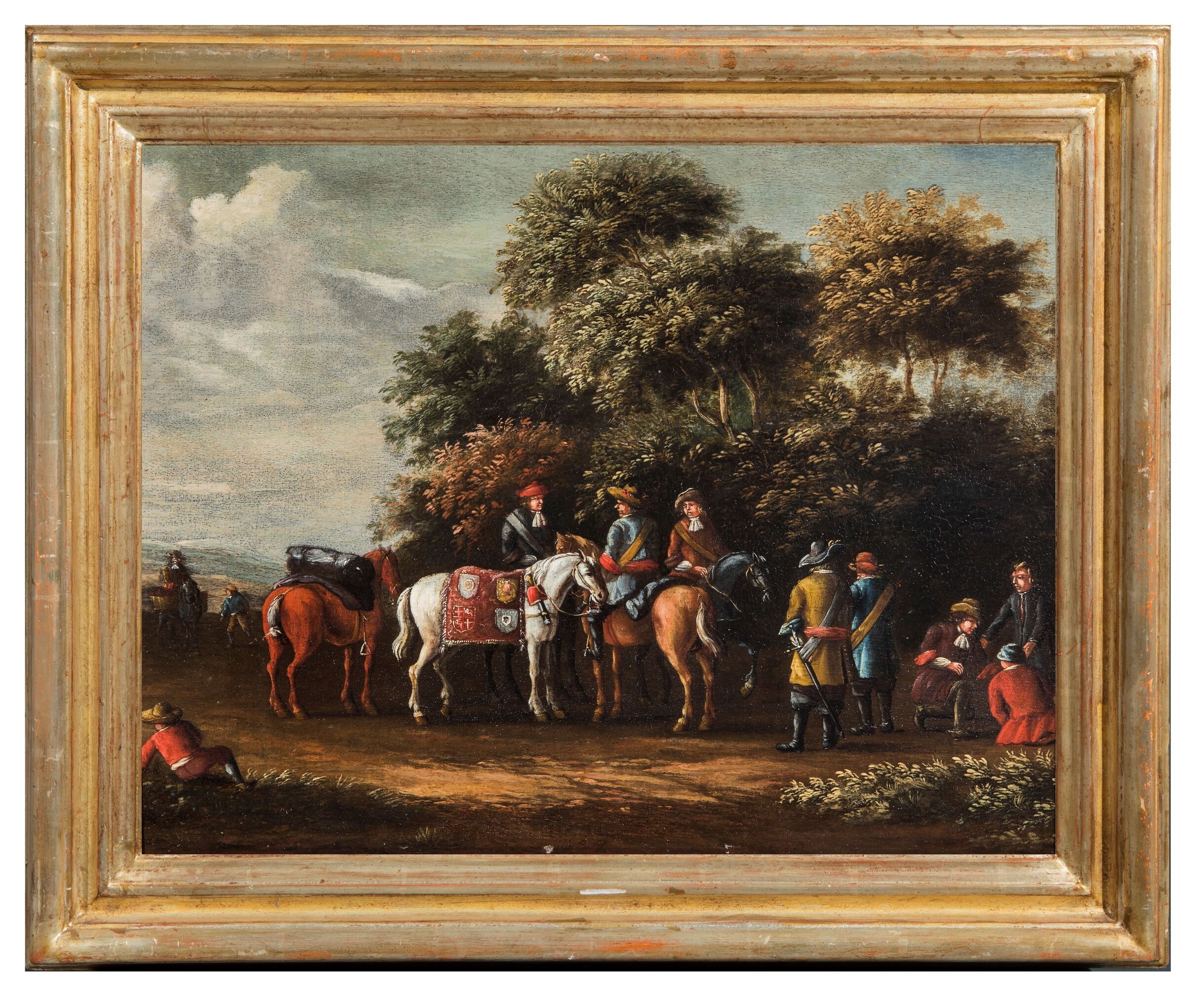Anonimo fiammingo del XVIII secolo Sosta dei cavalli