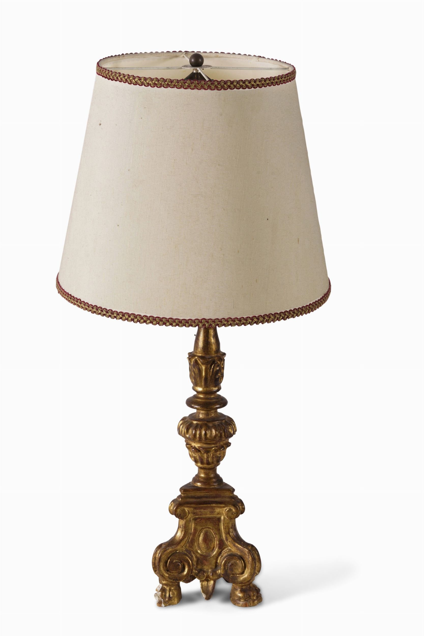 Candeliere in legno intagliato e dorato. XIX secolo