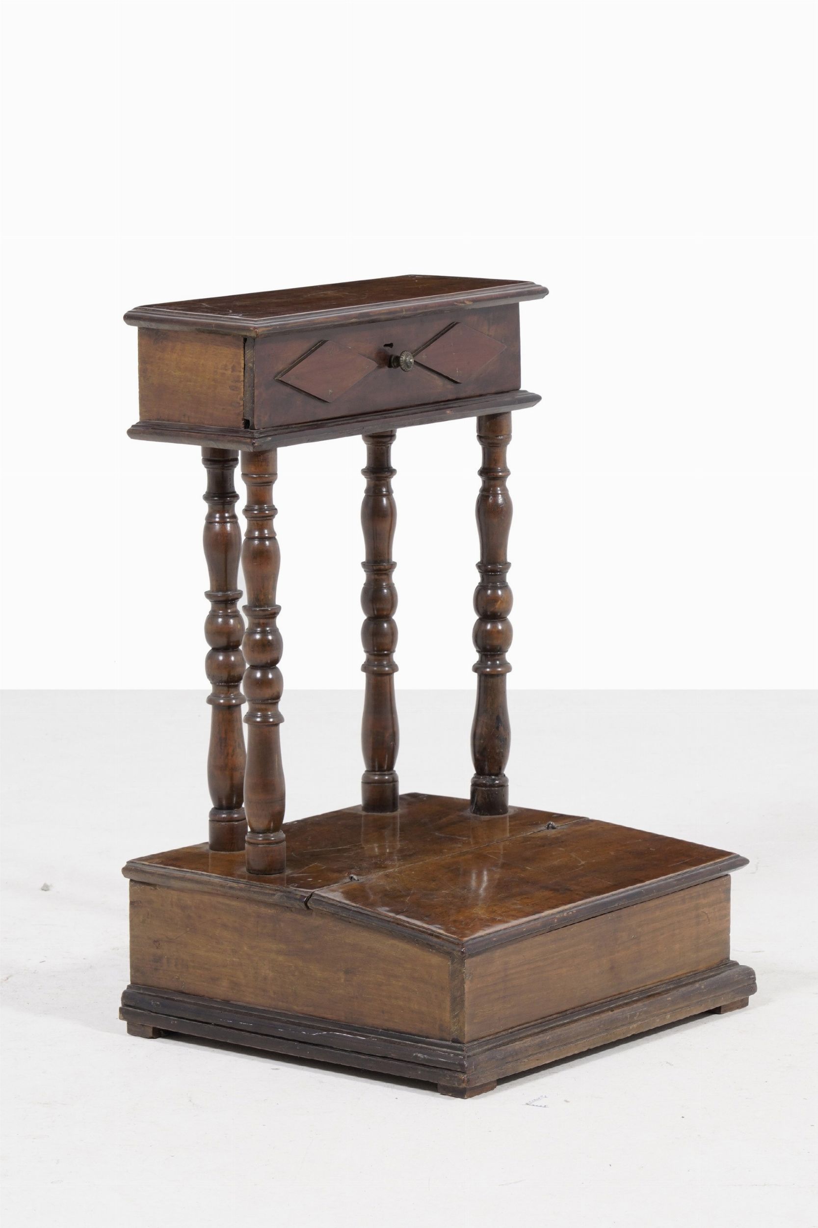 Inginocchiatoio in noce con sostegni torniti. XIX secolo