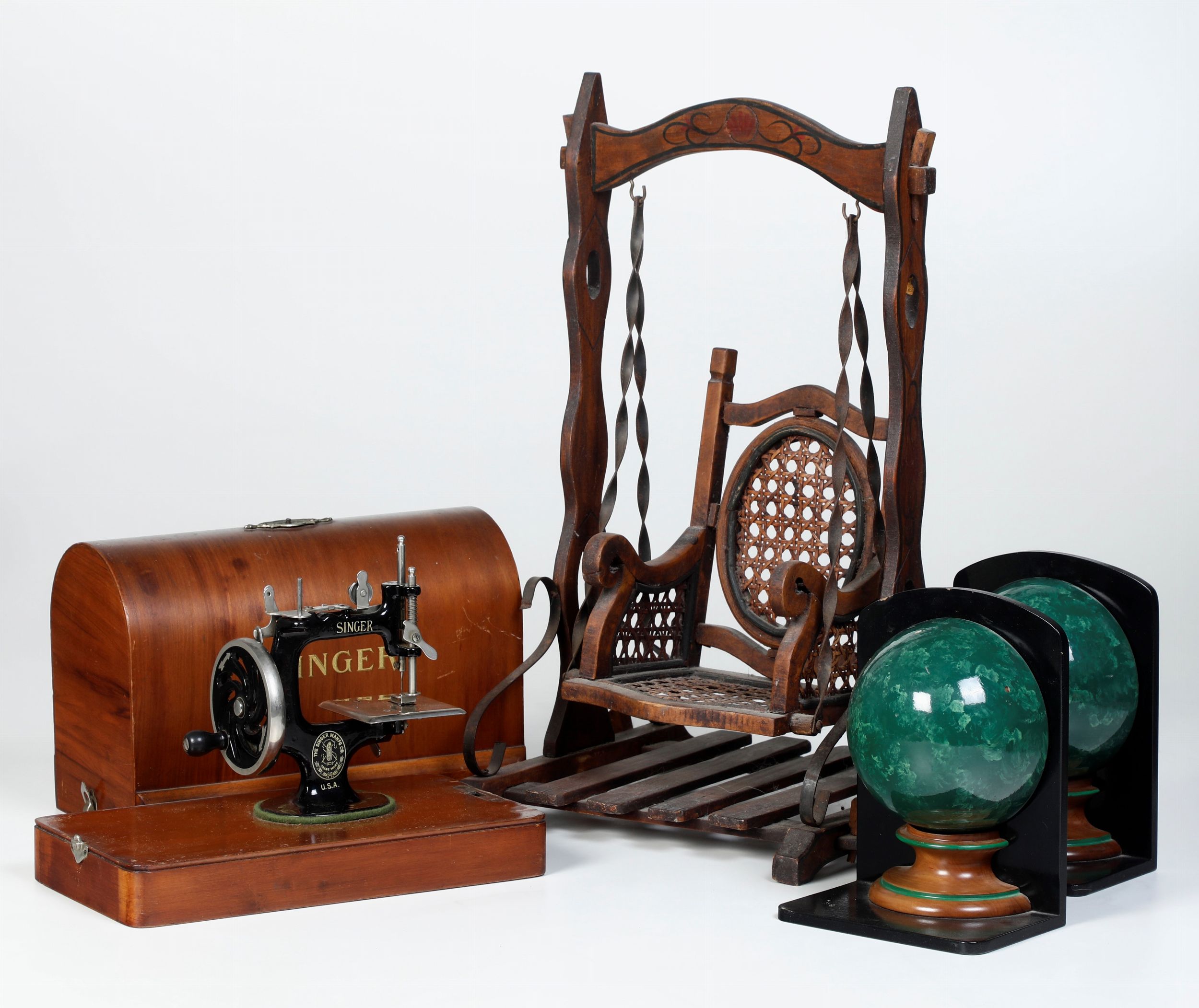 Lotto composto da un modellino di sedia a dondolo, un modellino di macchina da cucire [..]