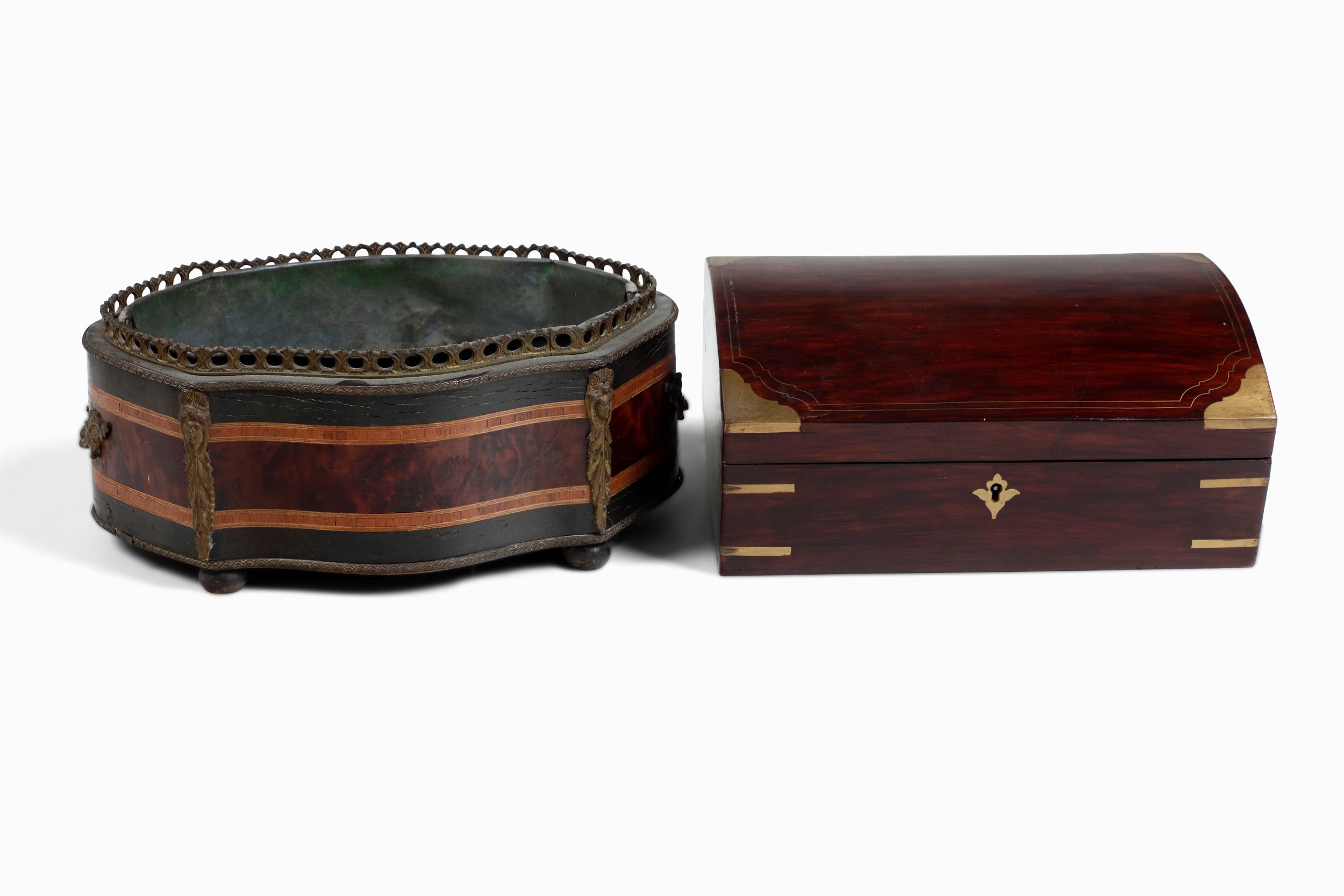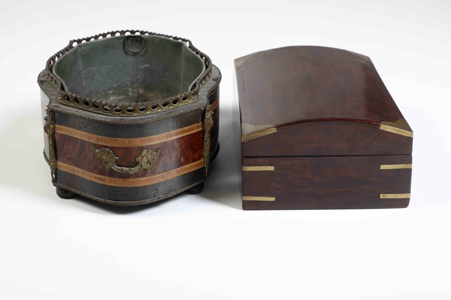 Lotto di una fioriera e una scatola in legno con dettagli in ottone e metallo. XIX-XX [..]