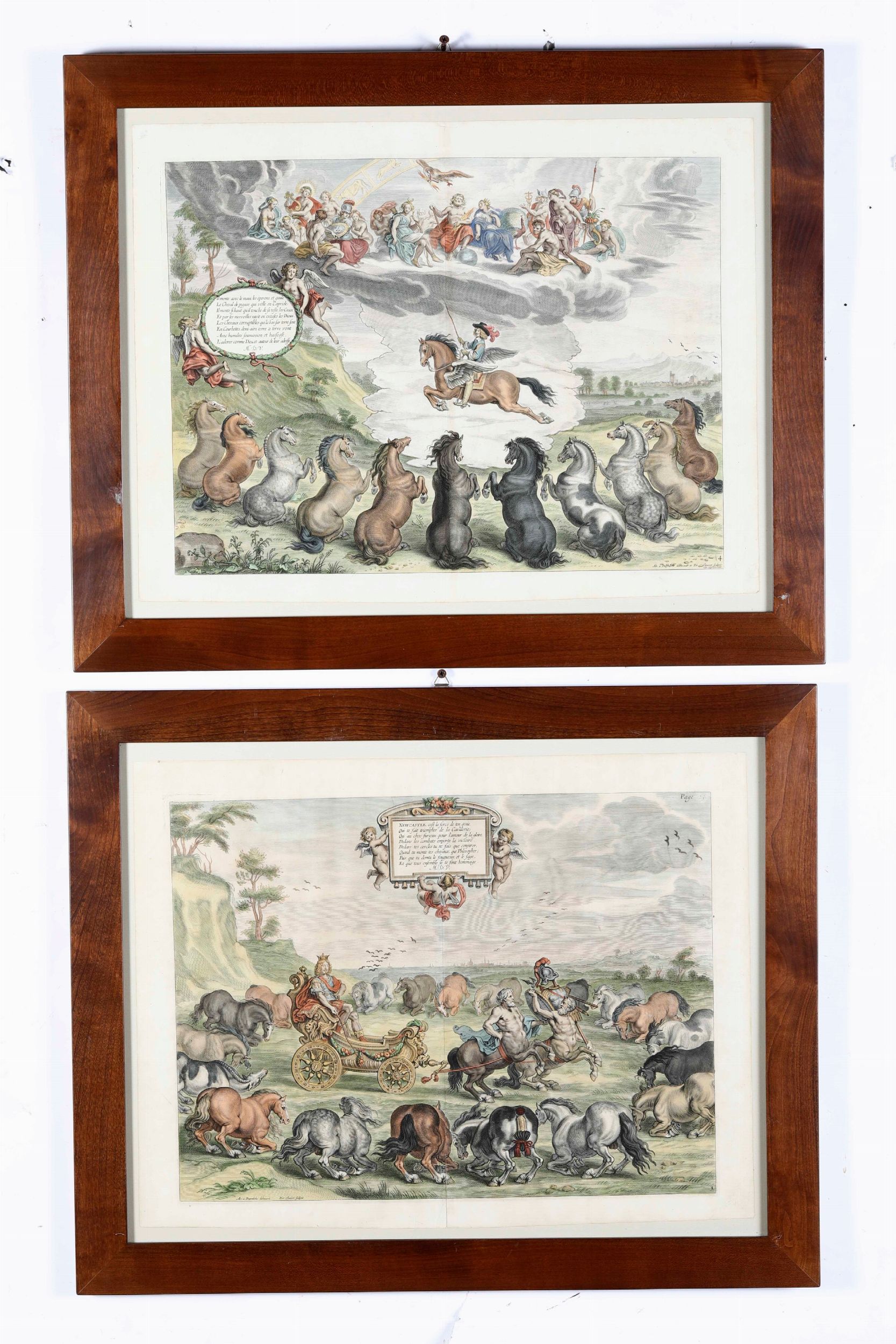 Quattro stampe a soggetto equestre e ludico. XIX secolo