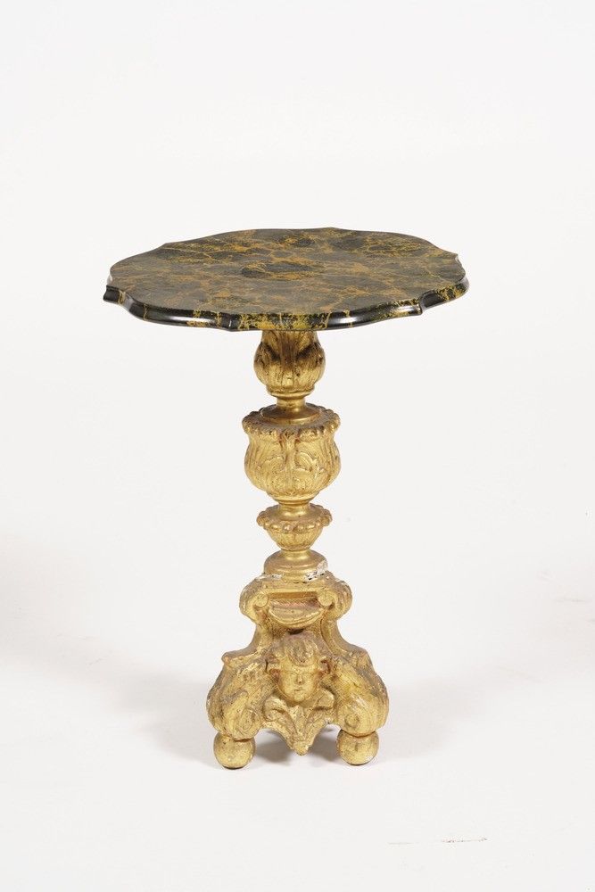 Tavolino in legno intagliato, dipinto e dorato. XIX secolo