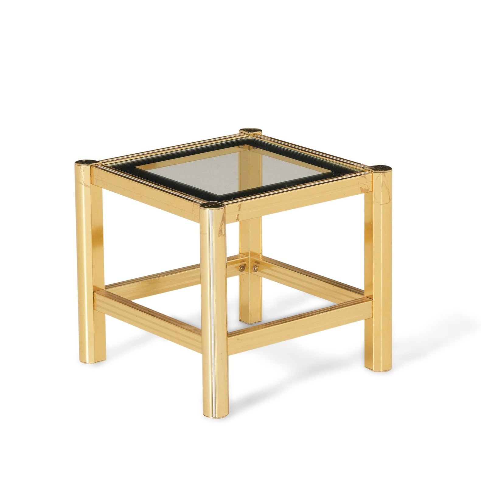 Tavolino in metallo dorato e vetro