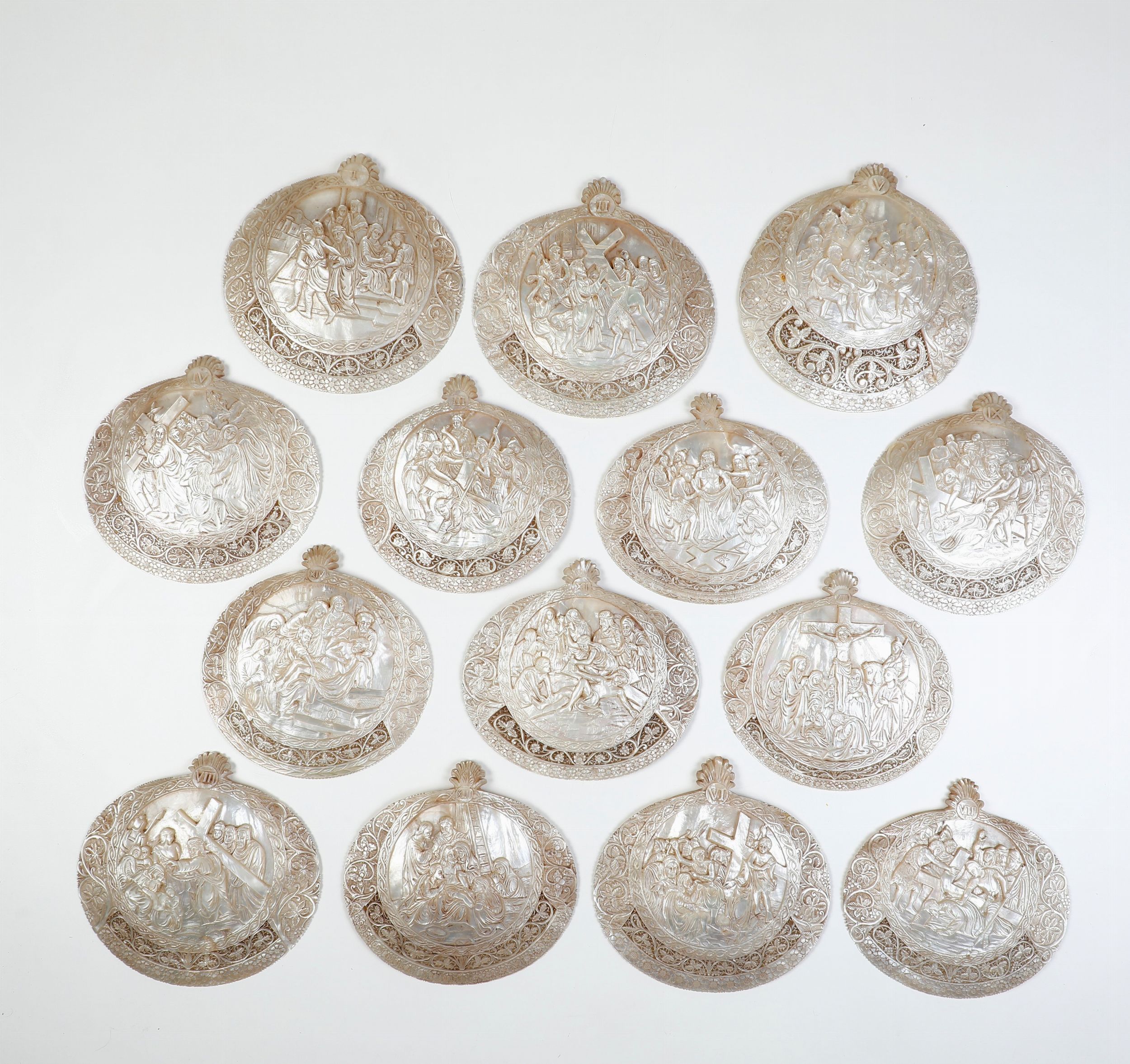 Quattordici stazioni della Via Crucis in madreperla. XVIII secolo misure da cm 16x16,5 [..]