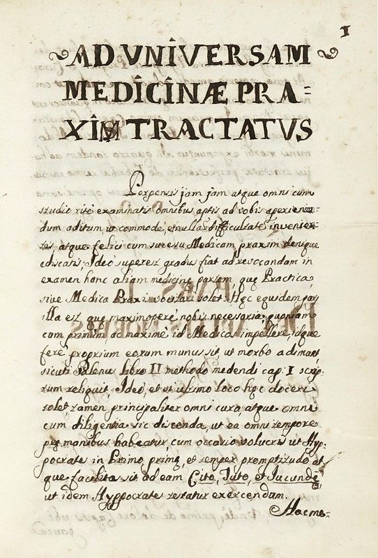 Manoscritto cartaceo a inchiostro bruno. Carte 73 e 64 (e 13 carte bianche all’interno del manoscritto e in fine). Testo in latino. Controguardie con strappi e segno di matita viola su una carta bianca iniziale. Cartonatura antica. Dimensioni mm 150 x 200 mm.