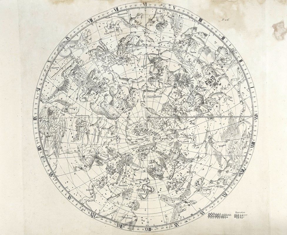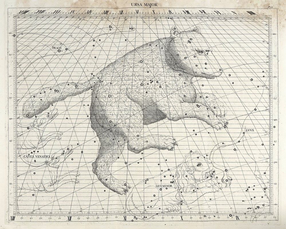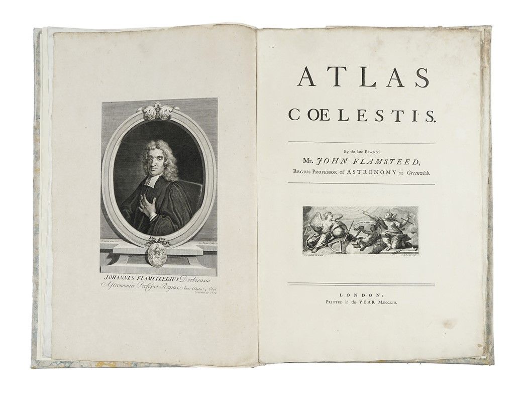 In-folio massimo (mm 560x385). Pagine [4], 9, [1] con 28 tavole calcografiche ripiegate, numerate 1-27 (in due incisioni la tavola numerata 14) di belle costellazioni celesti di dimensioni medie aperte (battuta mm 650x520). Con 1 bel ritratto dell'autore in antiporta inciso da Vertue su dipinto di Gibson. Frontespizio con vignetta incisa. Aloni e mancanze alla parte superiore, e restauri con parti risarcite. Legatura moderna rivestita in carta marmorizzata coeva.