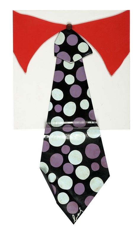 1 volume in-4° carrè (mm 300x300) profusamente illustrato in bianco e nero e a colori. Contenente: 1 multiplo cravatta in plexiglass e vinile di Enrico Baj sciolto (con macchie e lievi tracce di umidità), 1 farfallino a colori in carta, in ottime condizioni, anche questo sciolto. Legatura editoriale in piena tela con sovraccoperta (macchiata ai piatti). Il tutto entro custodia originale in cartone illustrata al piatto; con difetti.
