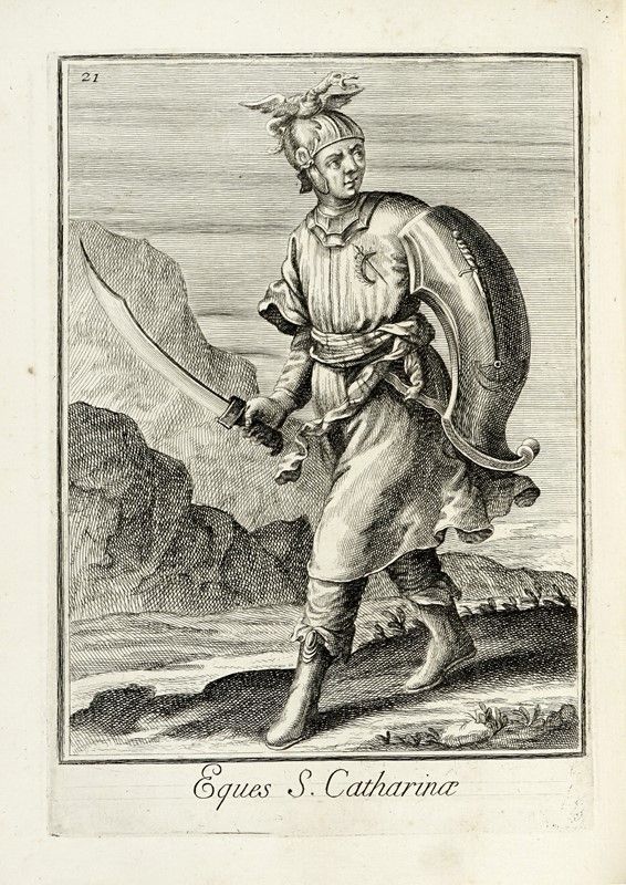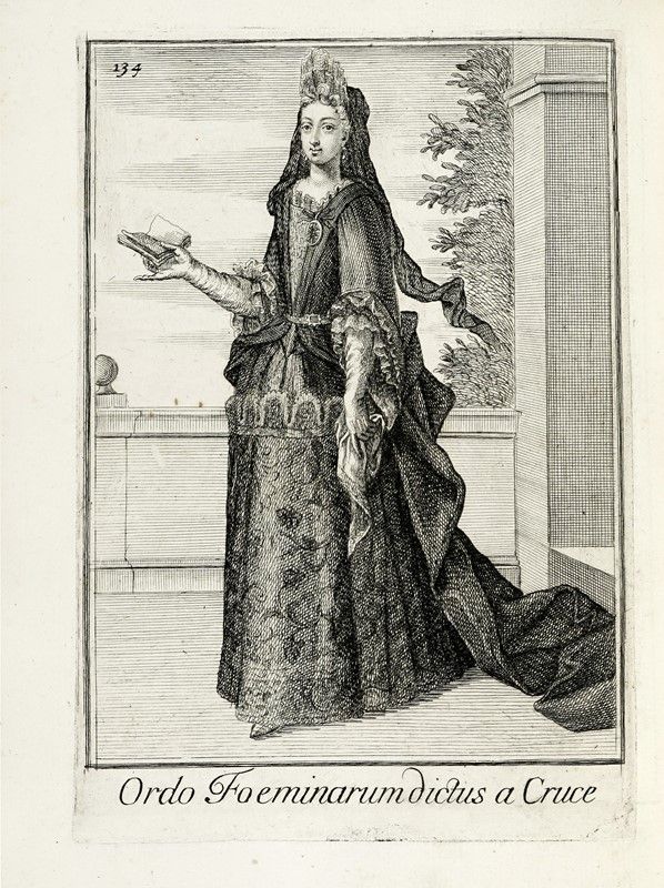 In-4° (mm 232x174). Collazionato completo [ ]4 a-2N4 con 141 tavole calcografiche di costumi e 23 tavole di croci ecc. in fine. Qualche carta pallidamente arrossata ma nel complesso copia genuina nella sua pergamena rigida coeva, tagli spruzzati di rosso (qualche difetto).