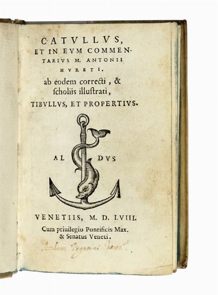 3 parti in 1 volume in-8° (mm 146x94). Carte 147, [1]; 57, [1]; [4], 3-93, [2], 1 bianca. Ciascuna parte con proprio frontespizio con ancora aldina. Buon esemplare con due strappetti con minima perdita di carta lungo il margine esterno delle due prime carte del Tibullo e forellino alle successive tre, e qualche pallido alone e macchietta. Piena pergamena rigida settecentesca, due tasselli (abrasi) al dorso, tagli azzurri.