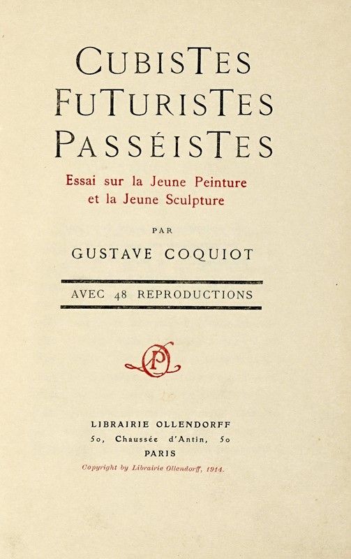 In-8° (mm 200x135). Con numerose riproduzioni in bianco e nero di opere fuori testo. Frontespizio in rosso e nero. Rare macchie, altrimenti ottima copia in barbe. Brossura editoriale originale stampata in rosso e nero, con fioriture ai piatti e lievi mancanze alle cuffie.