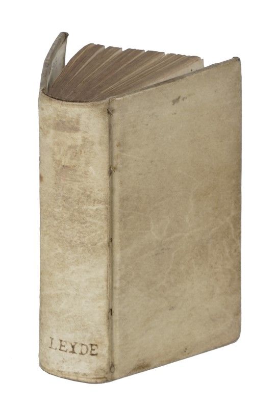 [RILEGATO CON:] Nifo Agostino, De pulchro & amore libri. Lugduni Batavorum: apud Davidem Lopes de Haro, 1641. Due opere in un volume in-12° (mm118x63), ciascuna con il proprio frontespizio stampato in rosso e nero e con affascinante marca xilografica. Pagine: [8], 342, [10]; [12], 160, [8]. Pergamena rigida dell'epoca.