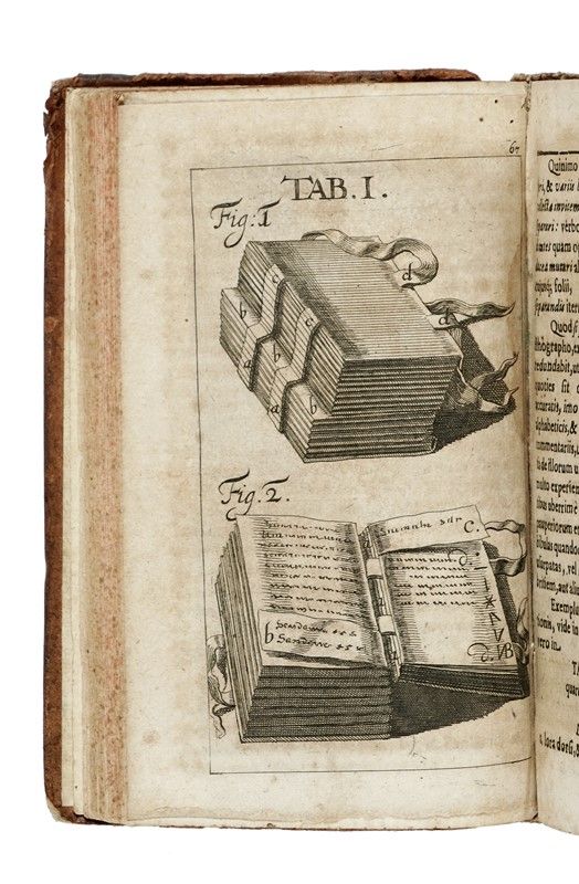 In-8° (mm 159x94). Pagine [8], 228 [i.e. 226], [6]. Omesse nella numerazione le pp. 152, 153. Con 6 tavole calcografiche. Pagine uniformemente arrossate, finissimo lavoro di tarlo al margine superiore delle pp. 130-140 (inclusa la terza tavola), e altre trascurabili tracce del tempo. [LEGATO CON:] Invitatio Amica Ad Antonium Magliabecchi... Hamburgi: apud Gottfried Liebezeit, 1689. Pagine 80, 8. Piena pelle coeva, dorso a nervi con titolo e decorazioni in oro, tagli spruzzati di rosso (abrasioni, sbucciature e piccole mancanze). Copia genuina.