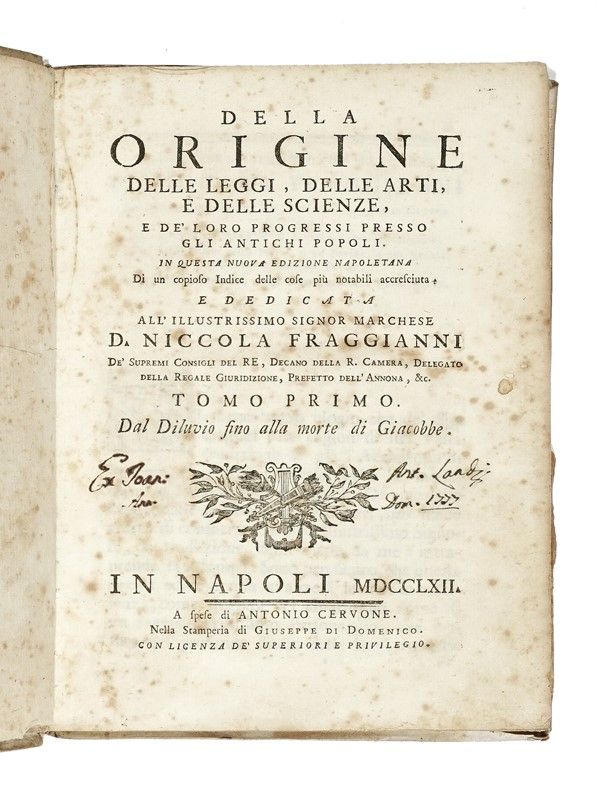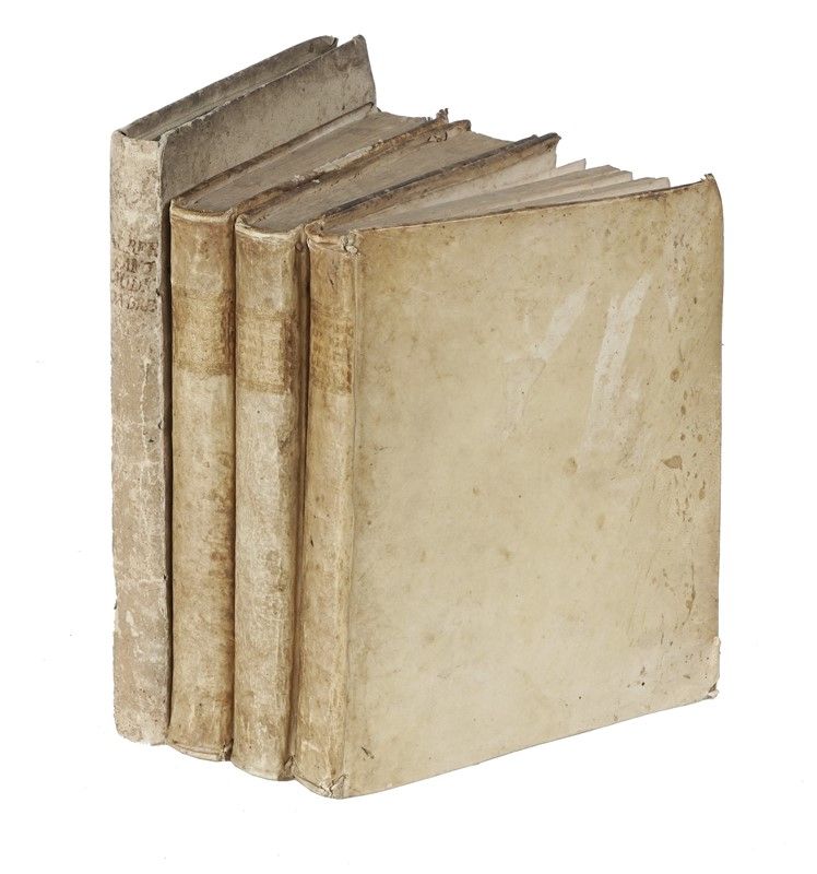 3 volumi in-4° (mm 231x176) non collazionati ma apparentemente completi, con fioriture, in pergamena coeva (un po' sciupata). [SI AGGIUNGE:] Albertano da Brescia, Tre trattati... Firenze, ed in Mantova nella stamperia di S. Benedetto per Alberto Pazzoni, 1732. In-4° non collazionato, in barbe e cartonato d'attesa (corpo di testo slegato).
