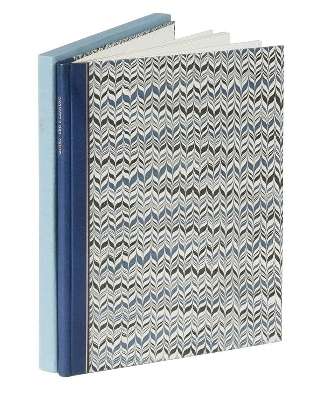 In-4° (mm 285x195). Con 2 acqueforti a piena pagina nel testo di Enrico Paolucci. Legatura editoriale in mezzo marocchino blu con piatti in carta Cockrel, con titoli impressi in oro al dorso; entro custodia in tela blu. Uno dei 100 esemplari numerati su carta a mano di Cernobbio, con firma a lapis dell'Artista al colophon, su una tiratura complessiva di 112 copie.