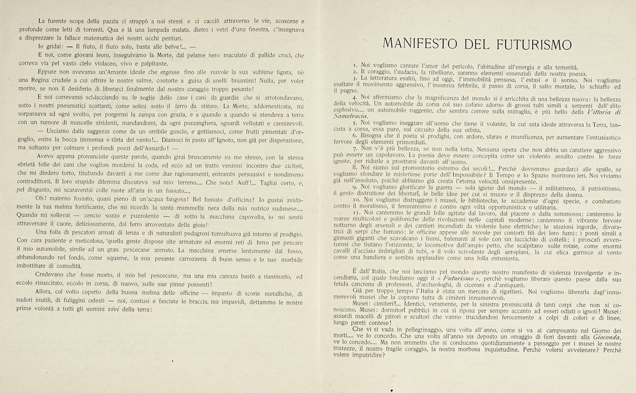«Ritti sulla cima del mondo, noi scagliamo, una volta ancora, la nostra sfida alle stelle!», Milano: Poligrafia italiana, s.d. [i.e. gennaio 1909].
