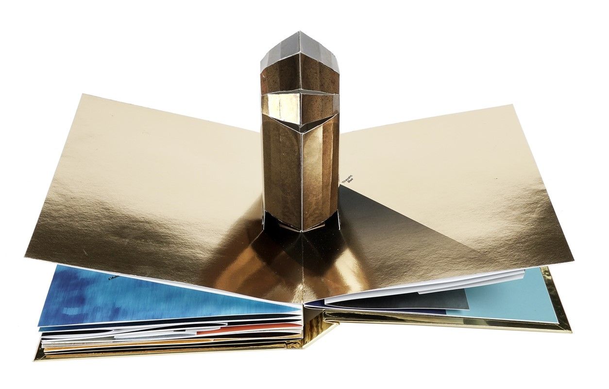 In-8° carré (mm 210x210). Con 9 splendide opere tridimensionali a colori, a doppia pagina, di Marinetti, Boccioni, Russolo, Sant'Elia, Govoni, Prampolini, Fillìa, Thayaht e Crali. Allegato un collaudo iniziale di Domenico Cammarota. Meravigliosa legatura in oro (e non in argento, come gli altri esemplari in commercio) con titoli a colori al piatto e al dorso, in rilievo. Si tratta dell'unica copia con queste caratteristiche ed è stata pensata e realizzata appositamente in occasione di quest'asta Gonnelli.