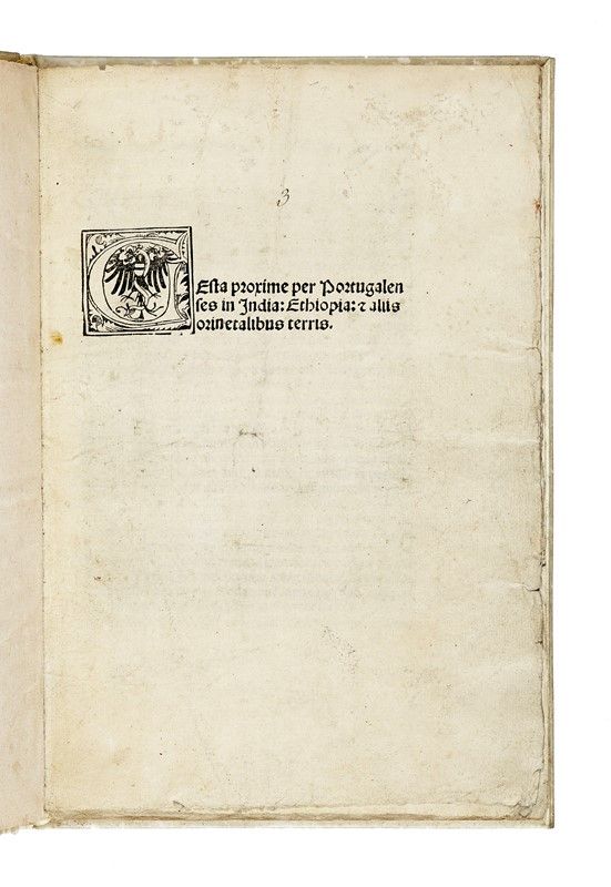 In-4 (mm 210x147). Carte [6]. Collazionato completo. Carattere gotico con due iniziali xilografiche. Piena pergamena rigida novecentesca con titolo e data calligrafati al dorso (strappi alla sguardia anteriore). Forellino restaurato senza perdite all'ultima carta, altro impercettibile restauro al margine inferiore della quarta carta, un paio di annotazioni di antica mano e altre trascurabili tracce del tempo.