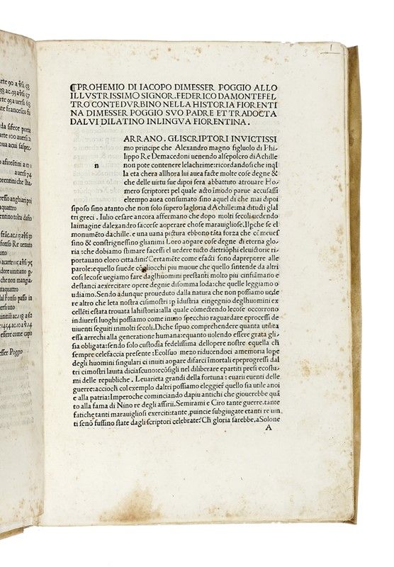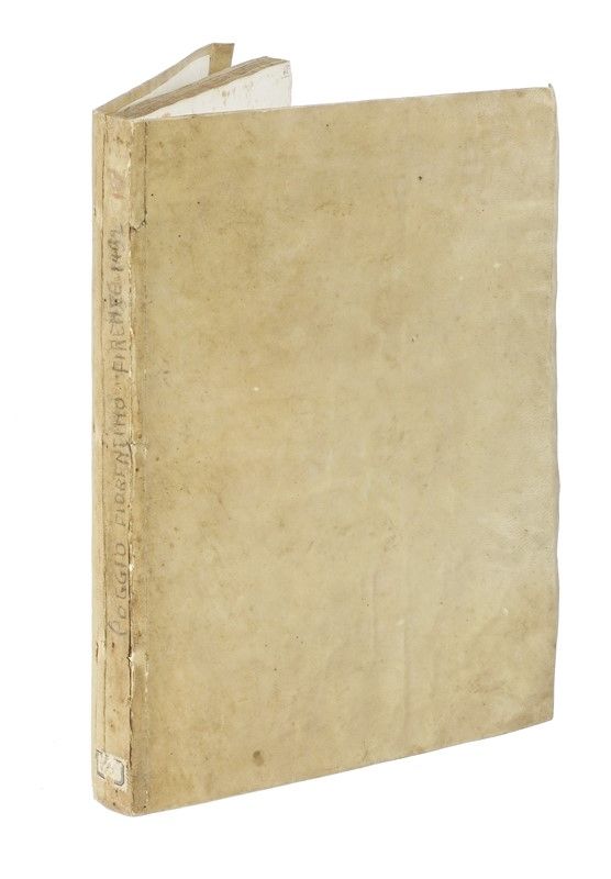 In-folio (mm 318x 212). Carte: [116]. Il bifolio iniziale con l'indice dell'opera ha margini leggermente più corti e pallidamente fioriti; altri margini occasionalmente fioriti, qualche macchietta, ma nel complesso buona copia recentemente rilegata in pergamena flessibile antica.