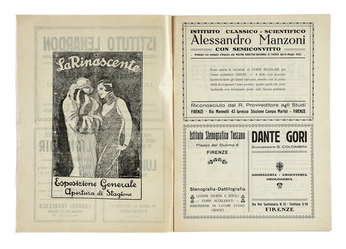 In-48° (mm 300x215). Carte [13]. Brossura originale illustrata al piatto anteriore, con inserzioni pubblicitarie a quello posteriore. Lievi fioriture altrimenti ottima copia.