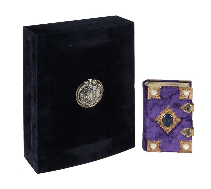 In-8° (153 x 101mm). Riproduzione dettagliata a colori del codice originale. Legatura editoriale in velluto, con inserti in pietre dure ai piatti, placchette a forma di cuore e bindelle in argento dorato con lapislazzuli incastonati. Conservato entro cofanetto editoriale rivestito in velluto con stemma mediceo ai piatti. Tiratura in 980 esemplari numerati. Presente il volume di Commentario. Presente anche il Certificato di Garanzia e Autenticità, entro busta inviata dell'Editore, ancora chiusa.